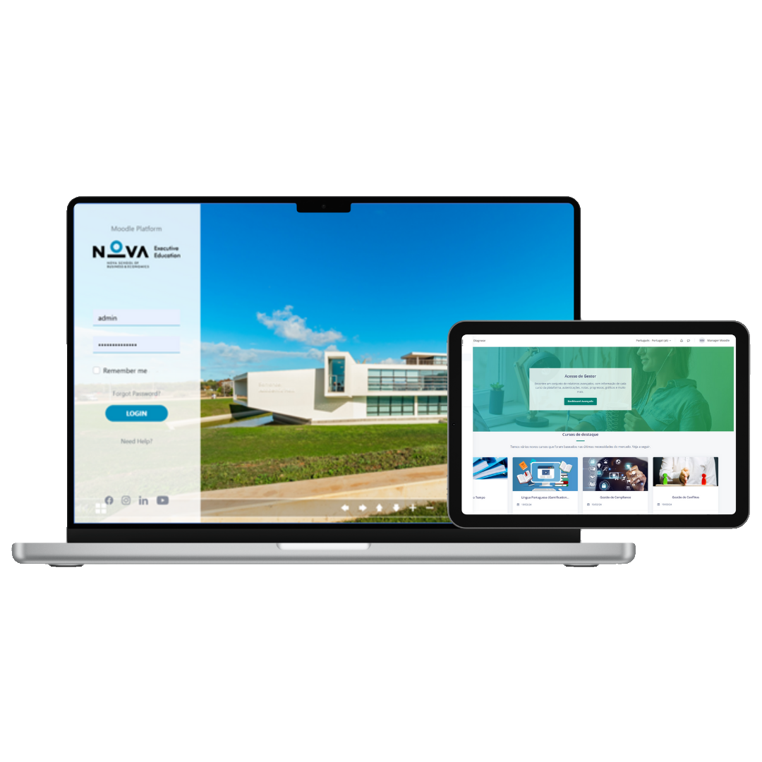 Implementação e personalização da plataforma Moodle, criação de interface institucional adaptada à identidade da universidade, configuração de plugins académicos (incluindo deteção de plágio) e suporte à adoção do ensino à distância e metodologias digitais de aprendizagem.
